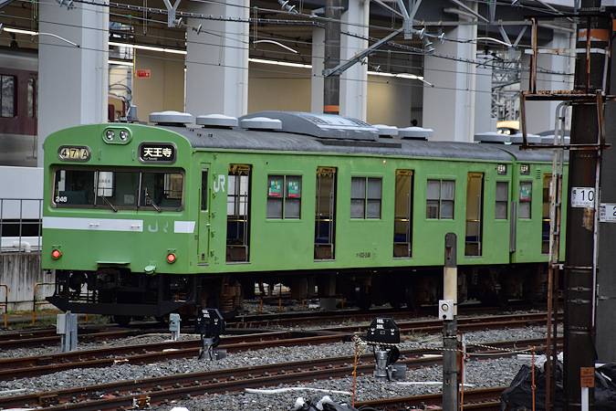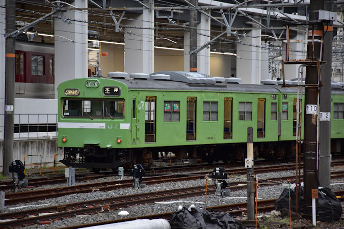 最後に、オマケで所長撮影の写真から。この日、京都駅にて103系(クハ103−246)の方向幕の幕回しに遭遇したので掲載しておきます。ちなみに2012年から森ノ宮、奈良の103系や201系の方向幕が統一されたため、大阪環状線系統の方向幕もたっぷり入っています。