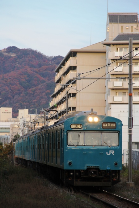学生の頃はオハ64。その後、35系でキクハっちゅうんが入線し、103系がその役割を引き継いでる和田岬線。黒ながら貴重なHゴム車で、原型に近い姿を留める最後の103系として活躍してますが、果たして何時まで足回りがもつのやら・・・。そして後継はF1編成なんかの?(笑)