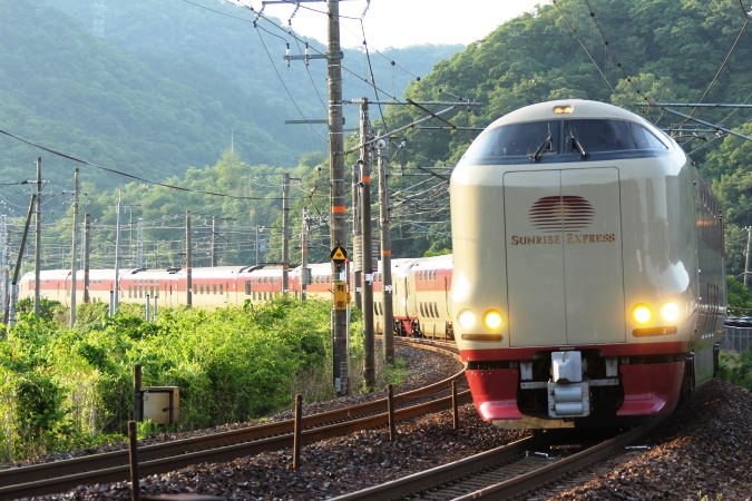 JR四国さんではキハ185系気動車を原色復帰させ、それを団体臨時列車として島内各地を走らせるイベントを企画しました。その第一弾は国鉄四国総局初の特急列車であり、今なお基幹列車として活躍を続ける「しおかぜ」と「南風」。この話が流れると、どこぞの悪魔さんによる『行きませんか?行きますよ♪』との囁きが、通信回線を使って流れて来るので、『ほな、しゃぁないか』と出掛けることに。「しおかぜ」の高松駅発が12時29分頃と遅いし、日の長い季節なんで早朝通過の「サンライズ」、デビュー間もない「四国まんなか千年ものがたり」なんかを絡めたろと出掛けました。でも色々とあったんだなコレが・・・(謎)