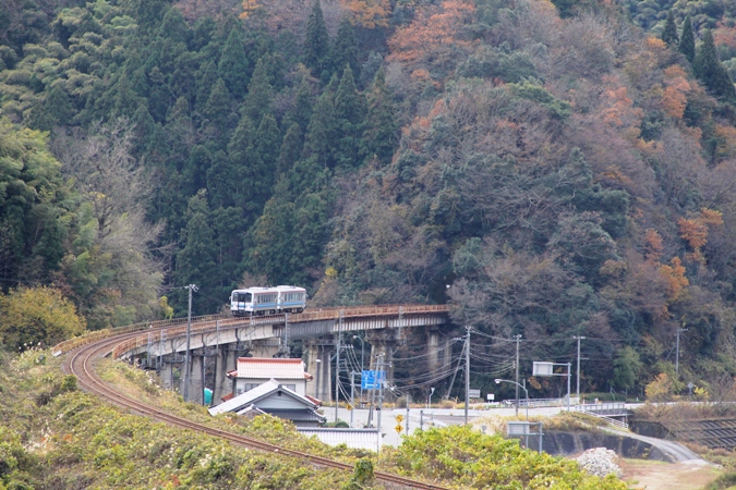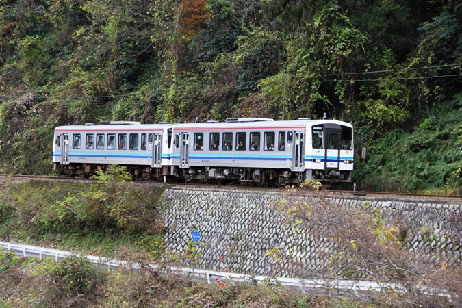 昔、地滑りで長期不通であった区間を抜けて来ます