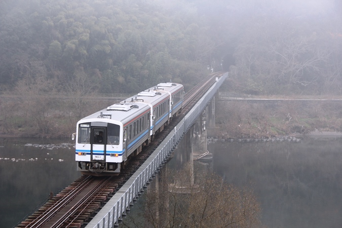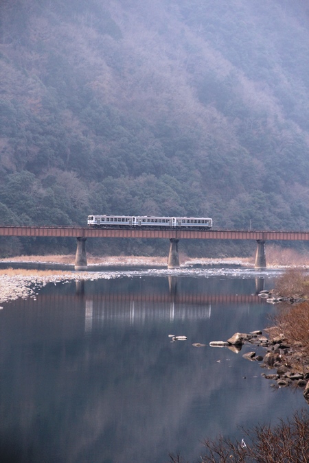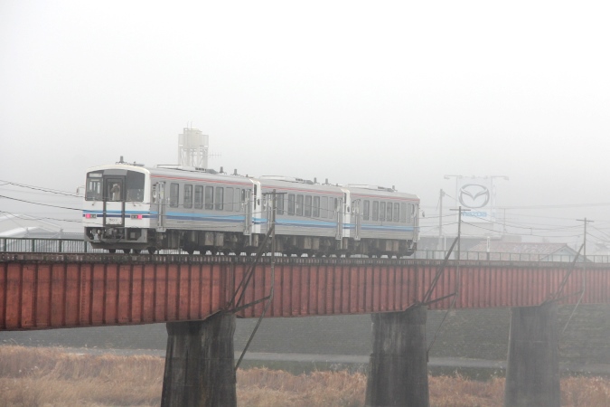 前回の訪問から3週間後、『冬至の時期やし、光線が厳しいから案外と少ないやろぅ。』との読みで早朝に家を発ち、山陽道〜岡山道〜中国道と高速を辿りつつ、途中のSAでは濃霧で周りが見えない状況(愕)。『これやったら盆地の三次市内はアカンやろなぁ』と思いながら三次市内へと降り立ったんでした。 現場は予想通りの濃霧でゲンナリしたもんの、『これも一興やん♪』と気を入れ直して線路沿いを江津方面へと車を走らせました。(使用機種:CANON EOS60D iPad-mini 執筆:平成30年7月6日)[ 2017(平成29)年12月23日(土) ]