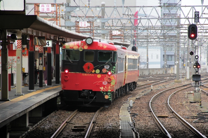 三江線のお別れ乗車のプランを策定し、あとは休暇取得と切符を取揃えるだけというタイミングで、まさかの大雪で三江線が長期運休の憂き目に(愕)。それは泣くに泣けない自然現象やし、再開後は乗客が殺到するんは明白なんで乗車を諦めて、再開を期待しつつ沿線撮影に切り替えて自分自身を納得させたんでした。そうした経緯の代替やないけど、同じく大雪で非常にしんどい目に遭われた北陸に行こうと怪社の同期夫妻とともに和倉温泉を宿所として出掛けることにしました。このメンバーでの旅は三朝温泉以来。でも今回は公共交通機関利用の旅なんでプロデューサーはわたくしなんであります(笑)