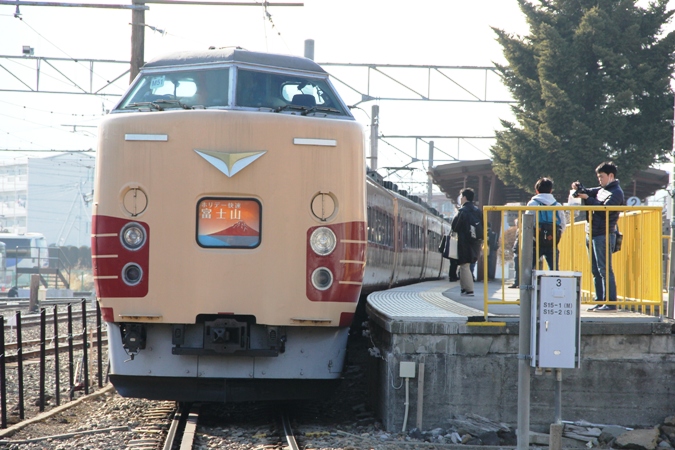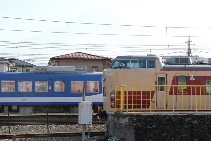美味しい昼食で満足してたら所長から悪魔の囁きラインが・・・。『快速富士山は最後の日が近い国鉄色ですよ。』