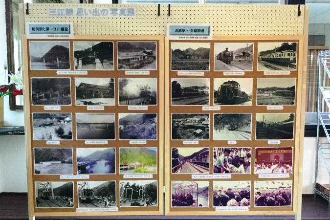 静かになった駅舎内には懐かしい写真が/浜原駅