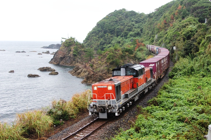 7月5日(木)から8日(日)にかけて西日本に停滞した梅雨前線による大雨は、西日本各地、殊に岡山・広島両県に甚大な被害を及ぼしました。JR西日本も例外では無く、物流の大動脈である山陽本線も広島県から山口県にかけての各所で嘗て無い規模で被害が発生。複数箇所で長期間の不通を余儀なくされました。こうした事態を受けてJR西日本とJR貨物では協議を開始。伯備・山陰・山口の各路線を通る毎日1往復の迂回貨物列車の運行を決め、国との協議が整った8月28日から山陽本線が復旧する10月中までの間の期間限定で運行を始めました。輸送量は限られるものの名古屋ターミナルと福岡ターミナルの間の物流の糸が繋がったんでした。