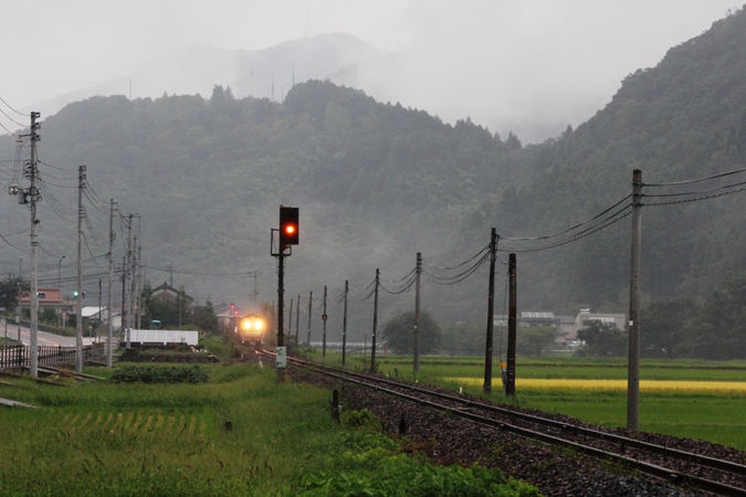前日はラストスパートで少し帰宅が遅くなり睡眠は3時間弱。それでも予定通り1時頃に自宅を出立。途中、睡魔に2回襲われてPAで仮眠を取るもんの這々の体で山口線沿線に辿り着き、例によって人の居ないマイナーなポイントを探すんでした。バス転回場近くの路側の広い場所からスタート