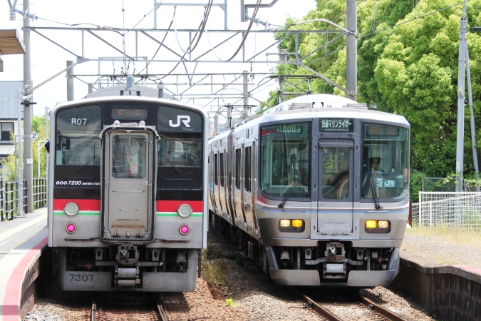 (左)7307 四カマ 126M (右)クモハ223-5001 岡オカ 3126M マリンライナー26号/予讃線国分駅