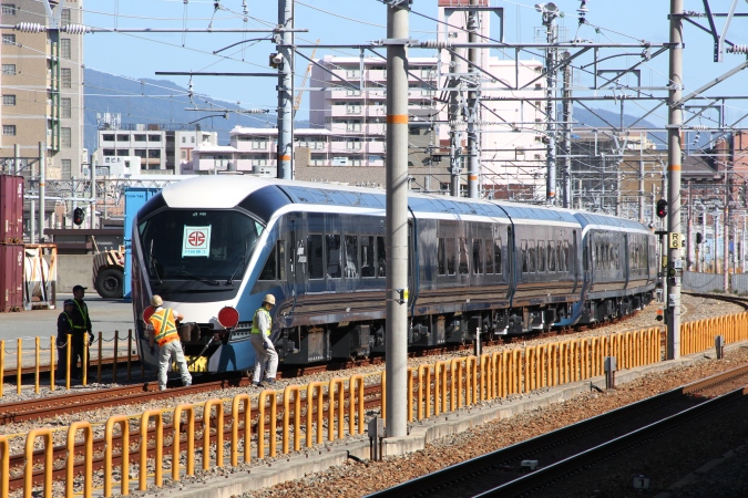 サロンカー山陽の2日後、Sさんからご教示いただいた軌道試験車とE261系の甲種回送を狙って、怪社をサボって駅に向かいました。そのせいで罰が当たったらしく56レは見事に被られてしまい失意の中でのスタートとなりました。下りは逆光ですねん(笑)