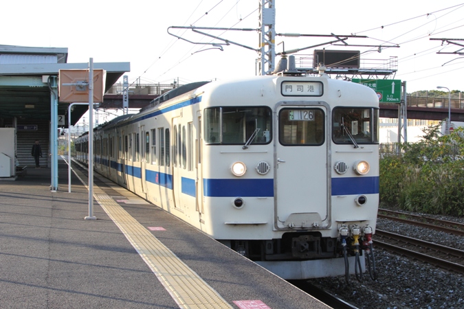 前日朝に立った駅へ移動します クハ411-126 分オイ 2238M/鹿児島本線スペースワールド駅