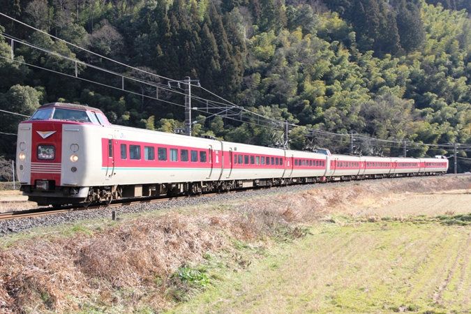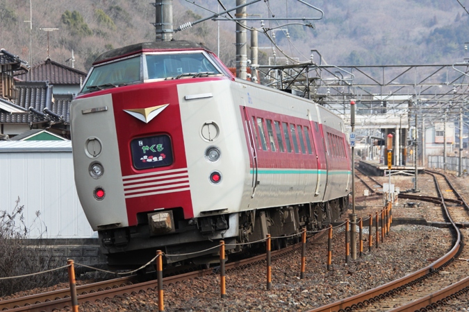 クロ381-134(上) クモハ381-508(下) 米イモ 1001M やくも1号/伯備線伯耆溝口−岸本間