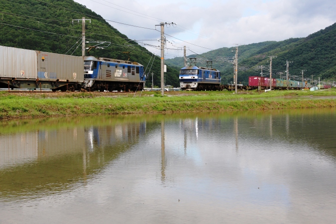 (左)EF65-1124 関 工9380レ (右)EF210-147 岡 1071レ 高速