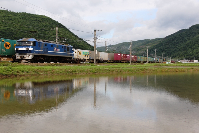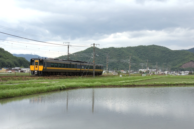 ワエが育った山陽地方の田圃は、例年、5月下旬に代掻きがなされた後に水が張られて美しい景観を醸し出します。それが線路沿いの田圃であれば水鏡となって多くの撮影者が集まることになります。そんな水鏡の名所の一つが山陽本線上郡−三石間の赤穂郡上郡町山野里地区。わたくしが怪社に入社して配属された街で、そこで一緒になった先輩が一部の田圃を所有・耕作されてるんでした。早朝から多くの皆さんが集まってはるポイントを訪れるんはなんと3年振りやったんでした。