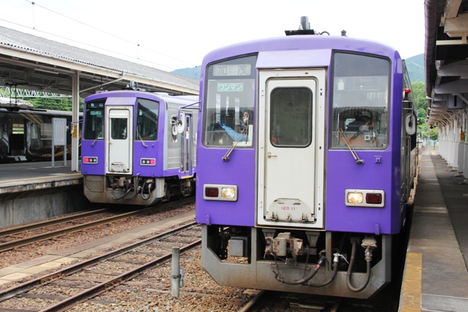 (左)キハ120-12 近カメ 234D (右)キハ120-11 近カメ 241D/関西本線柘植駅