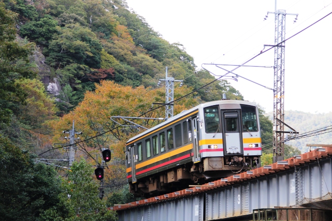 石霞渓近くの橋梁で列車を待ちました