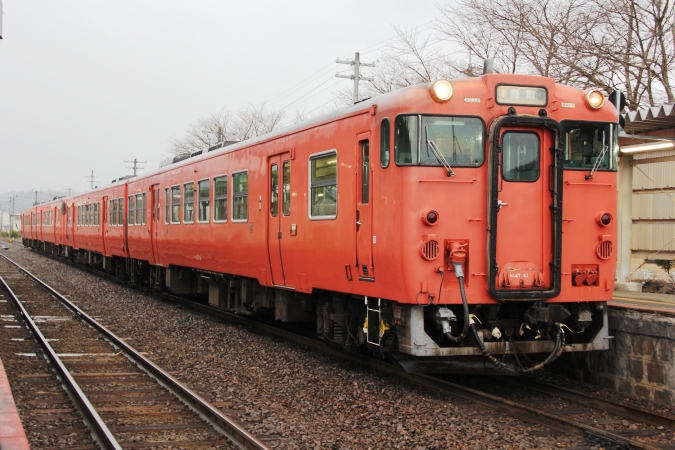 下り列車が出たら珍しい4連やったもんで思わず撮影! キハ47-41 米トウ 654D/因美線郡家駅