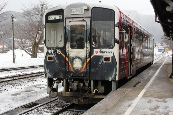 途中からまさかの雪中行!若桜駅でも雪が舞ってました
