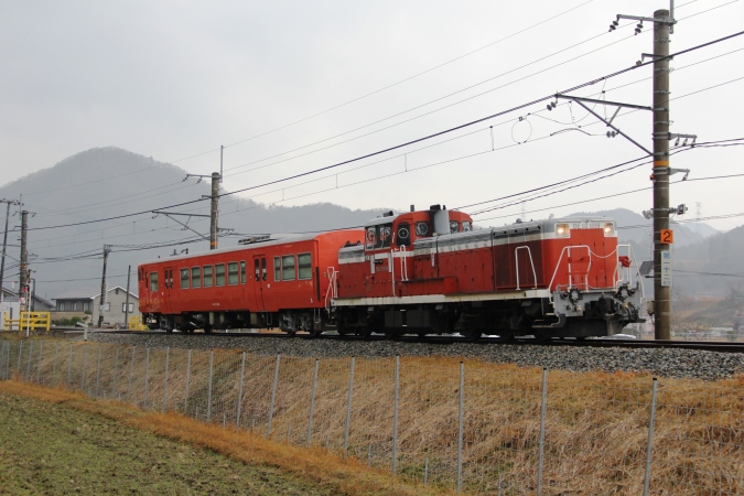 此の日は金沢総合車両所富山支所所属のキハ47が、前回とは反対に後藤総合車両所へ入場回送されるんを狙いますけど、出勤前のひと時でしか撮る事は出来ません。。。その前にトップナンバー車が居てたんで一枚