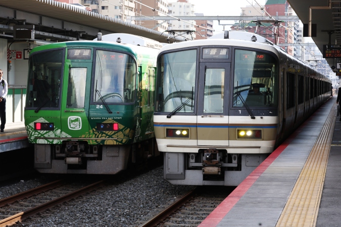 (左)クモハ221-24 近ナラ 2460S (右)クモハ221-1 近ナラ 2463S/おおさか東線JR野江駅