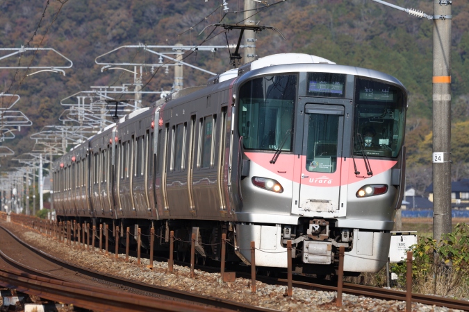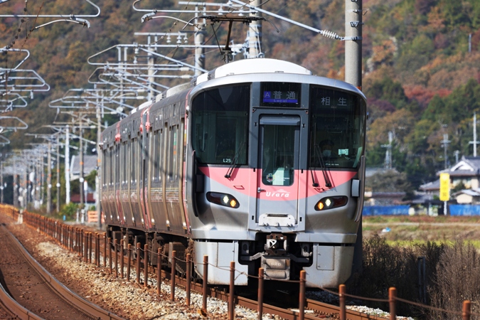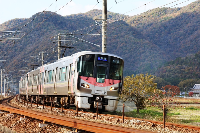 柿の木を絡めたりして・・・ クモハ227-526 中オカ 1316M/山陽本線上郡−三石間