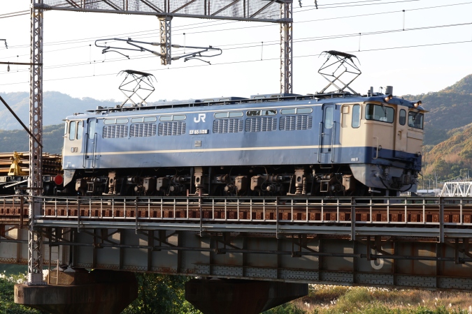 くどくサイドビューまで狙いました(笑) EF65-1128 宮 工8380レ 工臨/山陽本線熊山−万富間