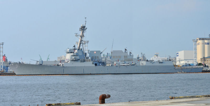 同じく8月26日、米イージス艦であるアーレイバーク級ミサイル駆逐艦「DDG−91ピンクニー」が入港致しました。建造が新しい艦だけに煙突もステルス性重視バージョンでした。(博多港)