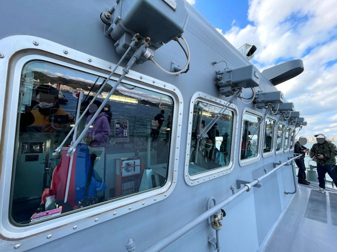 2023(令和5)年1月21日(土)・22日(日)に福岡県北九州市の門司港1号岸壁で、福岡地方協力本部による海上自衛隊 掃海艦「えたじま」(MSO-306)の一般公開が実施されました。「えたじま」は、2021(令和3)年3月16日に就役したあわじ型掃海艦の3番艦で、掃海隊群 第3掃海隊(呉基地)に所属。艦名は広島県にある江田島に由来します。