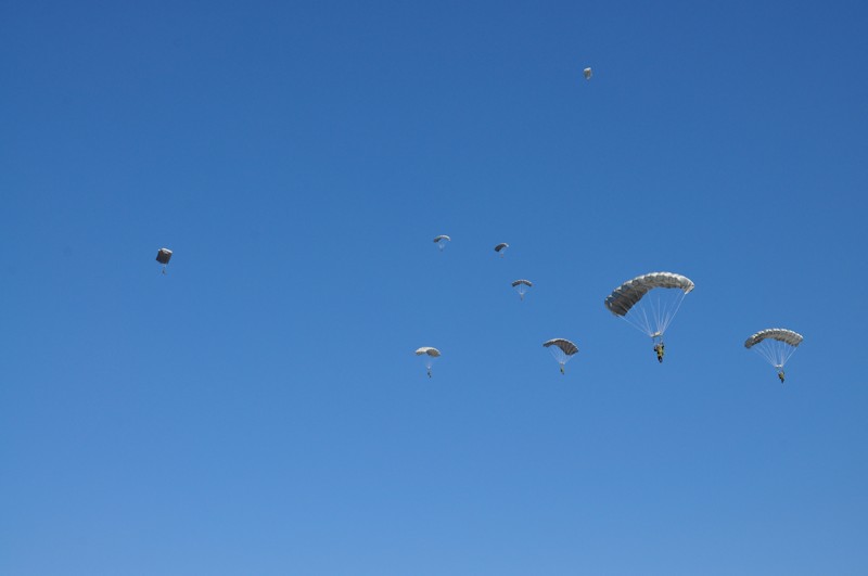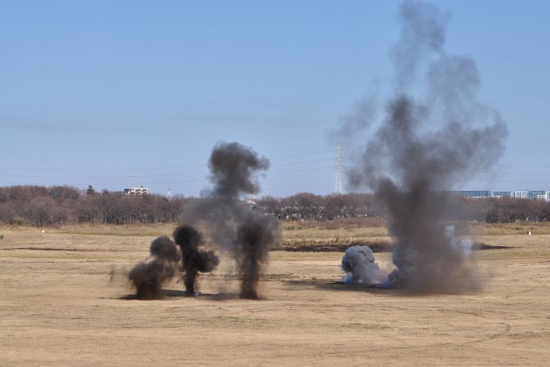 2015(平成27)年1月11日、陸上自衛隊習志野駐屯地の演習場で、陸上自衛隊の「第1空挺団」による新年の初降下訓練が一般公開されました。1966(昭和31)年から行われている毎年恒例のイベントで(一般公開は1974年から)、近年は島嶼防衛をテーマに、領土内の島に敵が侵入した設定で、航空機からの落下傘降下と、ヘリコプターや戦車、火薬などを実際に使用した戦闘訓練となっています。(撮影&解説:裏辺金好)