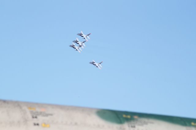 T‐4というとやはりブルーインパルスのイメージが強いですが、航空総隊司令部飛行隊の演技からは実戦的な要素も見られ、その迫力に相違はありません。