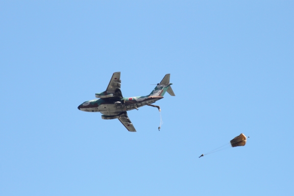 再びRW35側から3機が進入して、空挺降下を行います。降下している部隊は陸上自衛隊第一空挺団。陸自の中で最強の部隊と言われている、日本唯一の空挺部隊です。