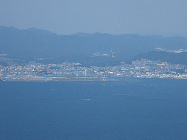 ズームで宮島の対岸、廿日市市周辺を撮影。