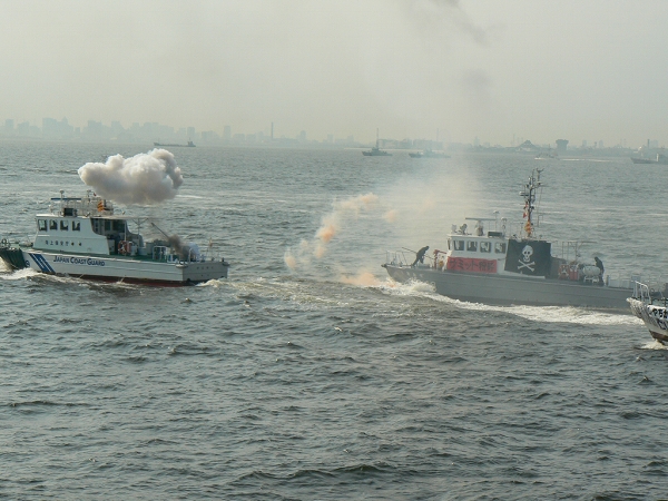 次は高速で逃走するテロ被疑船への対策訓練です。
