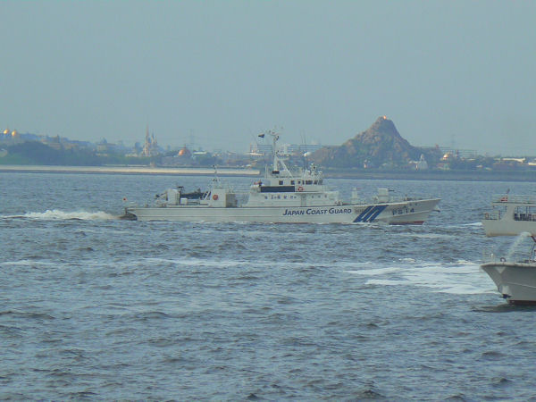 こちらも観閲式ではお馴染み。「白鳥の湖」に合わせてFL01「ひりゅう」とPC22「はまぐも」が舞います。どちらも横浜海上保安部所属のフネです。