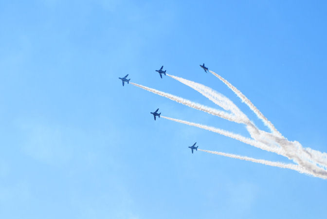 演技終了しギャラリーからの声援に応えるフライト・クルー達。お疲れ様でした。次回も素晴しい演技を見せて下さい。