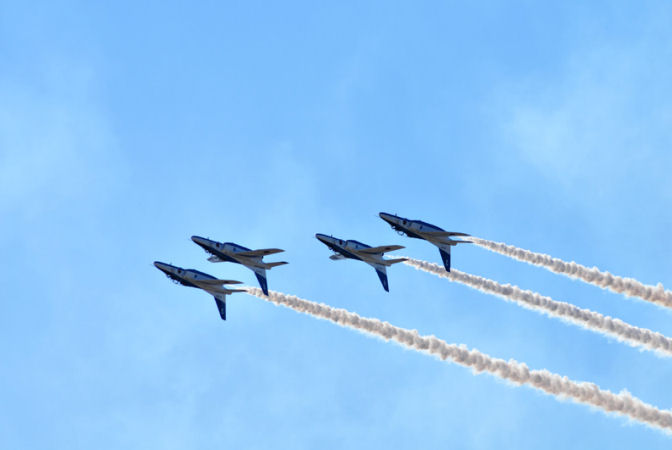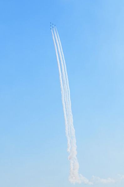 さて、今回もブルー・インパルスの素晴しいアクロをご覧いただきましょう。ただ、今回は逆光の為に演技の素晴しさを上手く綺麗に表現出来ていません。悪条件下での絵になる分をお届けしています。撮影位置は駐機していた1号機の真正面からの撮影です。では、ブルーの演技をどうぞご覧下さい。まずは1号機にパイロットが乗り込みました。間も無くエンジン始動です。