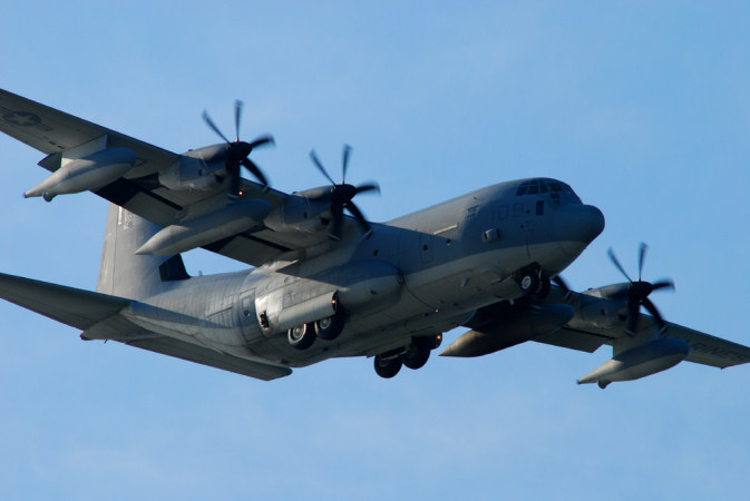 C−130の派生型であるKC−130J 空中給油輸送機。