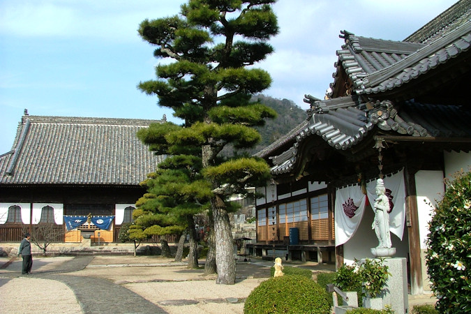 石火矢町ふるさと村付近にある頼久寺。足利尊氏が命じて諸国に造らせた安国寺の1つで、寺号は、備中松山城主の一人、上野頼久にちなんでいます。三村家親、元親の墓などもあります。