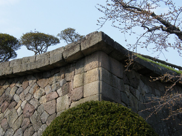 石垣の上から2番目をせり出すことにより、石垣を登っての進入を難しくしています。