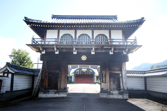 1828(文政11)年に大野城二の丸の鳩門として建築されたもので、1903(明治36)年に光明寺へ移築。二層部分はのち焼失して再築されています。