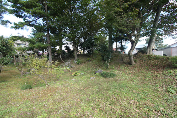 庭園の東側にある築山は越前大野城を築城した金森長近が、大野城への外敵の侵入を防ぐために外堀に沿って造らせたと云われる土塁の一部で、市内で唯一現存しています。