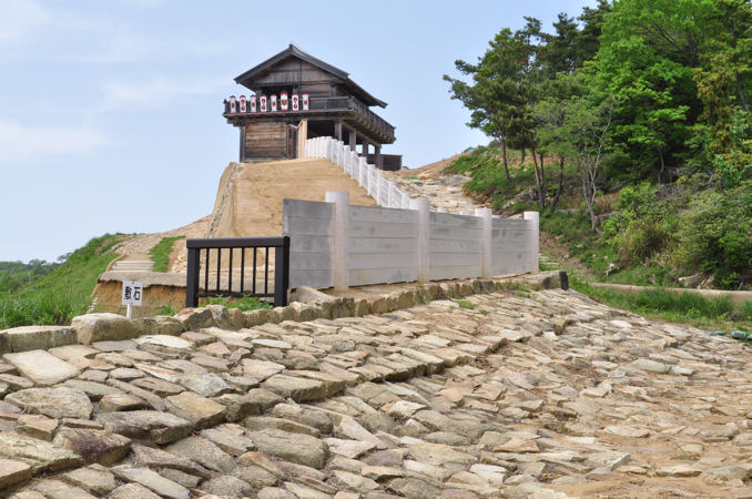 桃太郎説話や「温羅(うら)伝説」の舞台として知られており、1978(昭和53)年の鬼ノ城学術調査団による調査を皮切りに、特に平成に入ってから現在に至るまで継続的に発掘調査が行われ、さらに総社市では2001(平成13)年度から史跡整備に着手。西門や角楼などが推定復元されるなど、次第にその全貌が明らかになりつつあります。