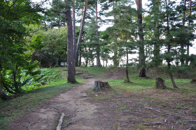 この下にある「お屋敷」と呼ばれる大きな郭(60×110m)があり、城主の館跡であるという説明書きでした。