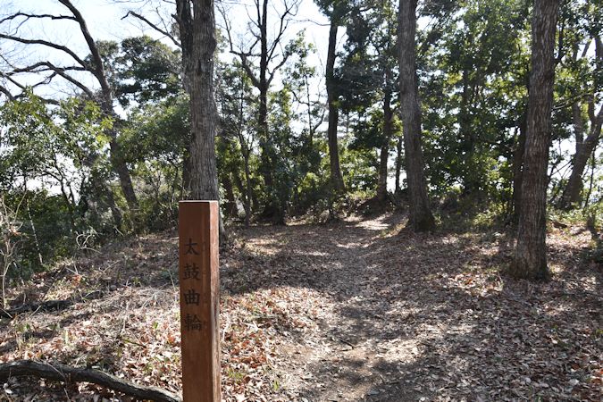 太鼓曲輪に行く直前に、石垣が見えます。訪問時には枯れ葉に覆われていたので、最初は通りすぎてしまいました。