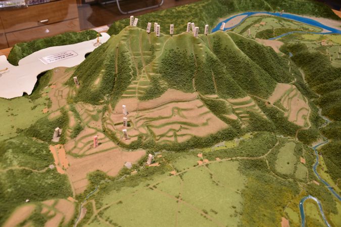 さて、根小屋には内藤氏の居館が整備されたことが、発掘調査の結果で裏付けられています。このため、津久井城は根小屋式山城として解りやすい好例です。一方、山頂部には本城曲輪を中心に階段上に曲輪が配置され、土塁や石垣が残ります。