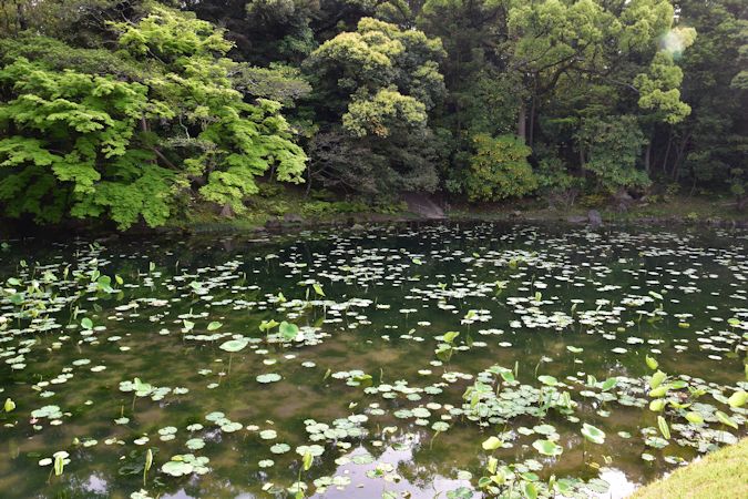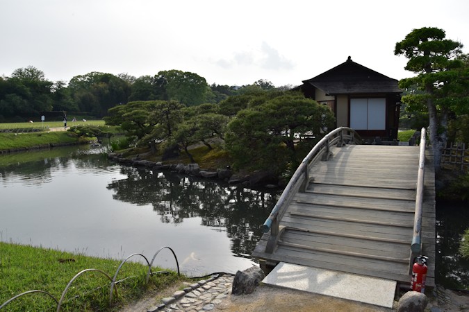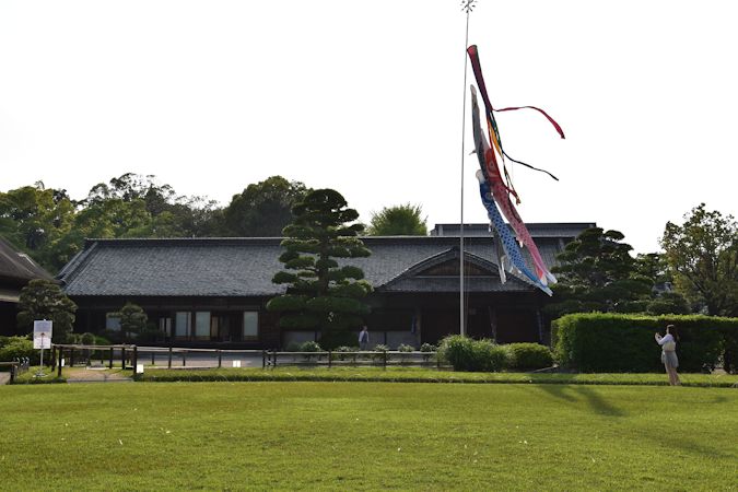 戦災を免れた数少ない建築で、建物中央に水路を通している風流な建築。藩主や賓客の休憩所として使われ、今もその機能は変わっていないようですね。