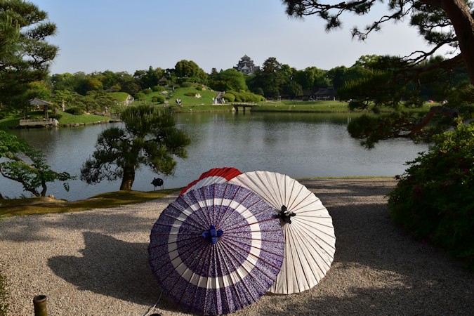 一方の後楽園は、日本三大庭園の1つで国の特別名勝に指定。岡山藩主の池田綱政が家臣の津田永忠に命じ、1687(貞享4)年より着工させ、1700(元禄13)年に一応の完成をみた庭園。岡山城本丸の北側に川を隔てて立地しています。1884(明治17)年に岡山県に譲渡され、一般公開を本格的に開始されましたが、1945(昭和20)年に太平洋戦争による空襲を受けた際に、岡山城とともに大きな被害を受けたことにより、戦後に修復が行われています。
