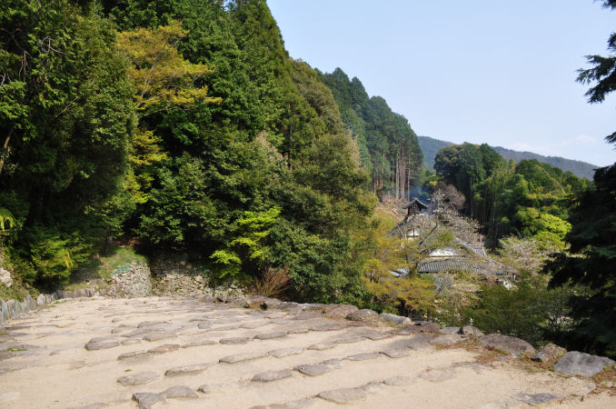 かつてはこの両脇へ階段状に家臣の屋敷が立ち並び、写真左手が羽柴秀吉、右手が前田利家の屋敷でした。