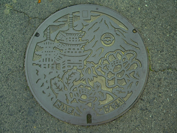 調査者:豊多摩快速コメント:町の花の牡丹、當麻寺の東西二塔、二上山が描かれています。當麻寺の塔は双方とも奈良時代建立なのだとか。