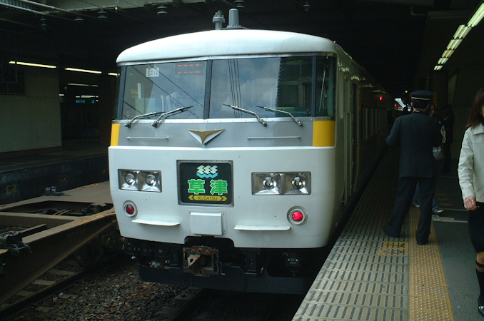 185系特急「草津白根」。特急「草津」の中でも全車指定席とされた列車が名乗った名称です。