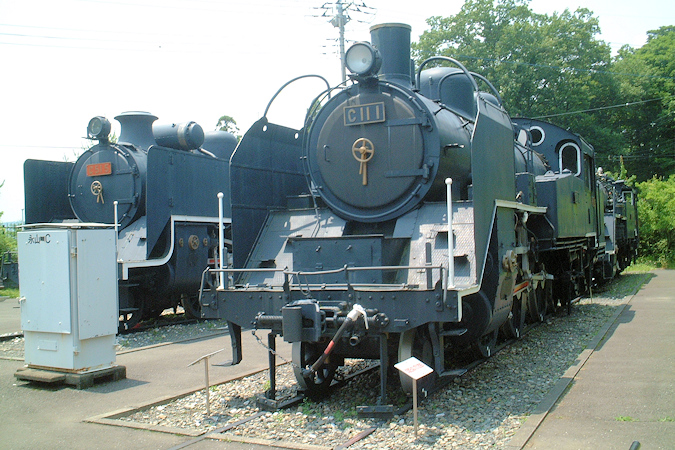当時は保存車両の上屋が無いほか、今は鉄道博物館に収蔵されているC51 5号機の姿が見えます。