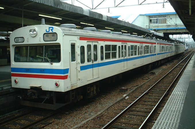 こちらは可部線の105系。オリジナルの3ドア車と103系改造車の4ドア車との4両編成でした。